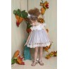 Η Violeta είναι ένα ρομαντικό φουστάνι σε εκρού ασημί glitter χρώμα με ασημί δερμάτινη ζώνη. Το ρούχο στολίζεται από ιταλική τούλινη δαντέλα στο τελείωμα και στο μανίκι. Αξεσουάρ η μπαντάνα για το κεφάλι.